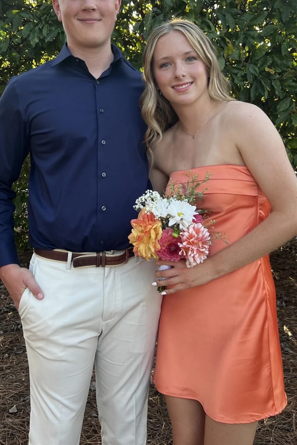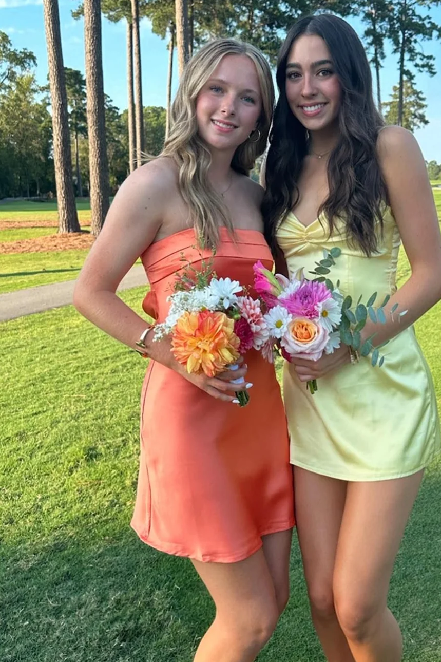 Strapless Orange Ruched Sheath Short Homecoming Dress
