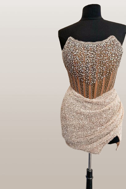 Strapless Periwinkle Beaded Bodycon Homecoming Dress