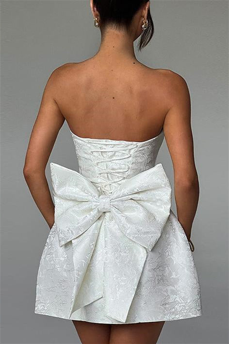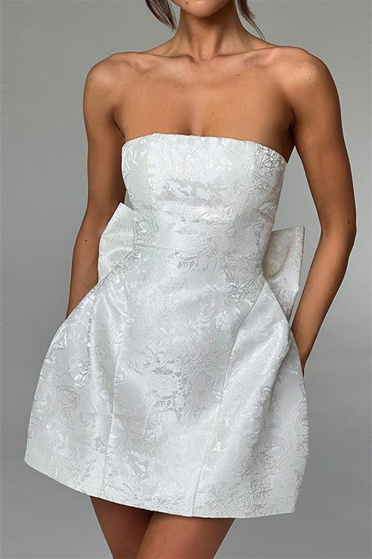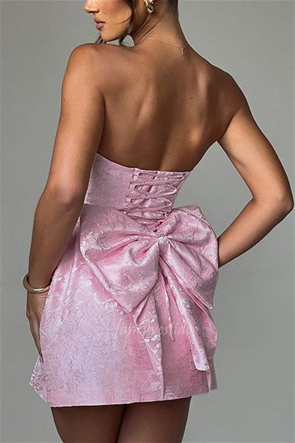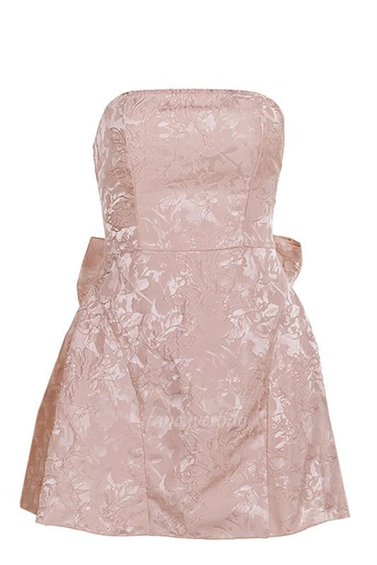 Strapless Pink Brocade Graduation Homecoming Dress with Bow