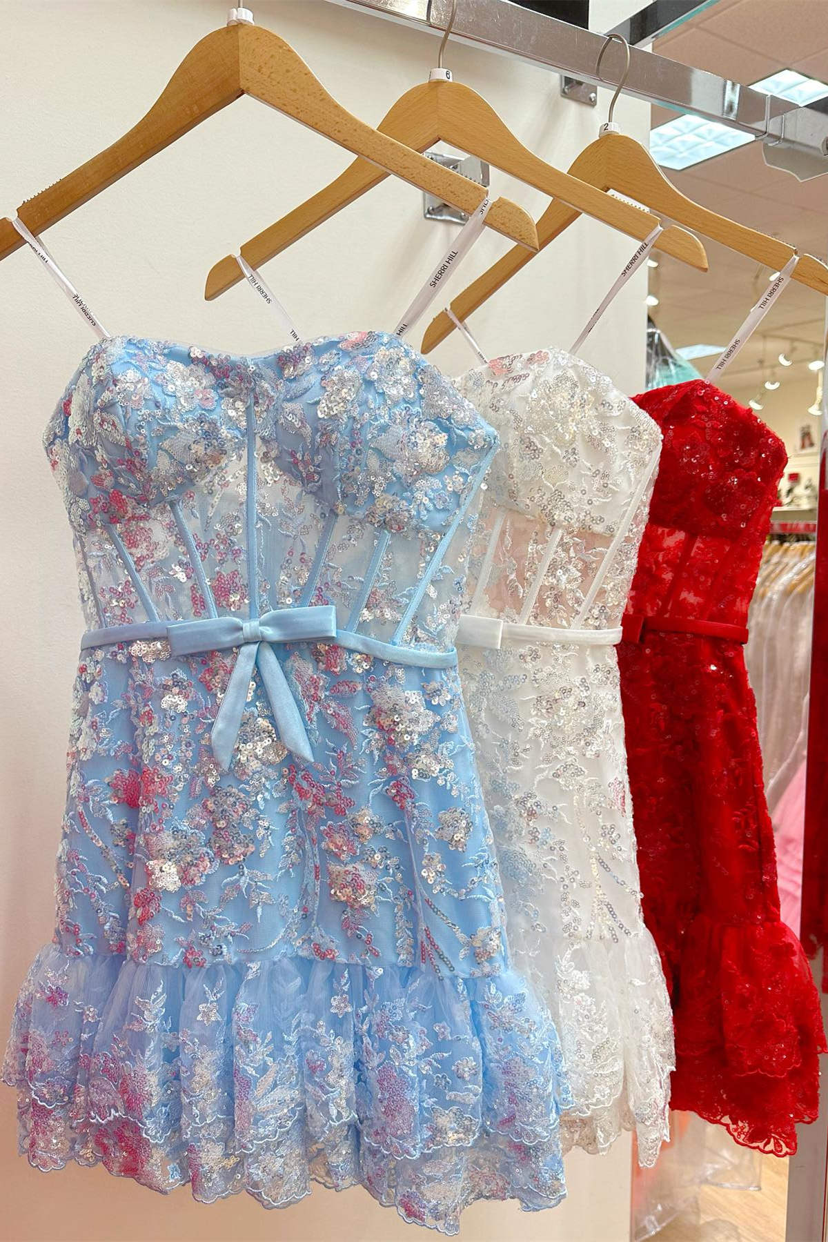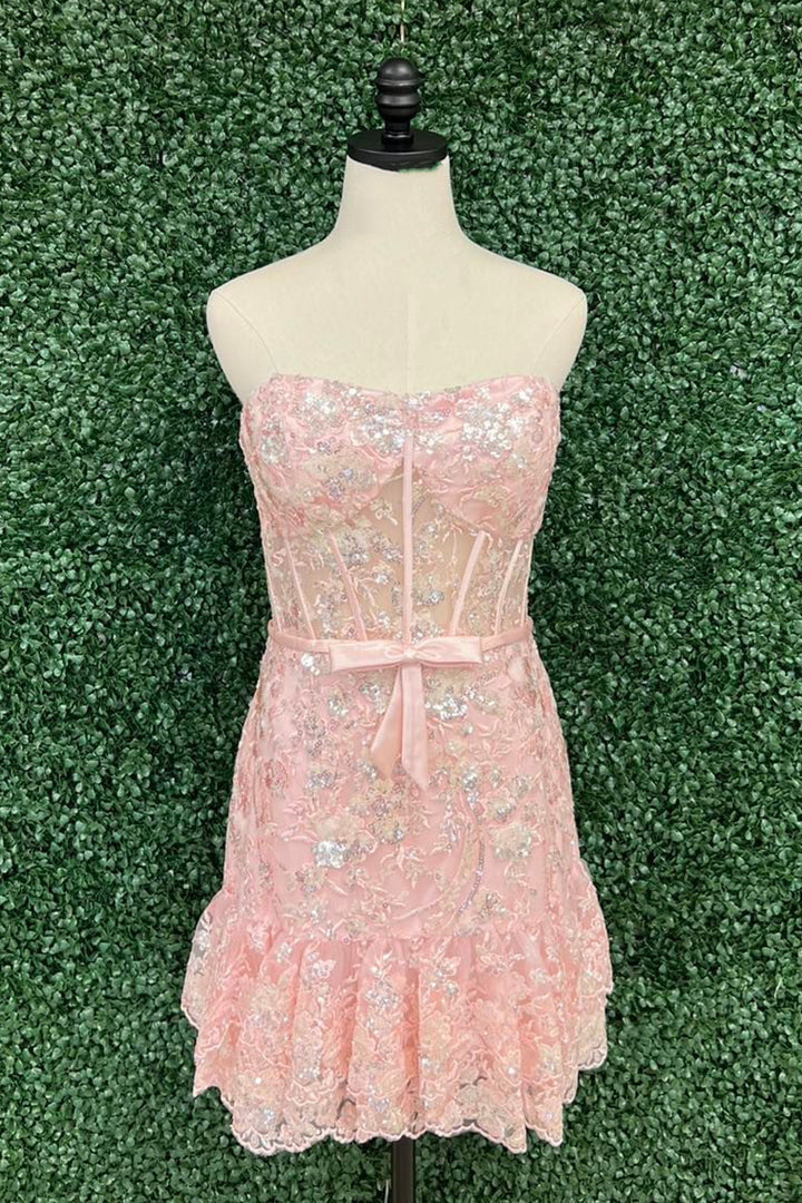 Strapless Red Sequins Tiered Short Homecoming Dress Dress