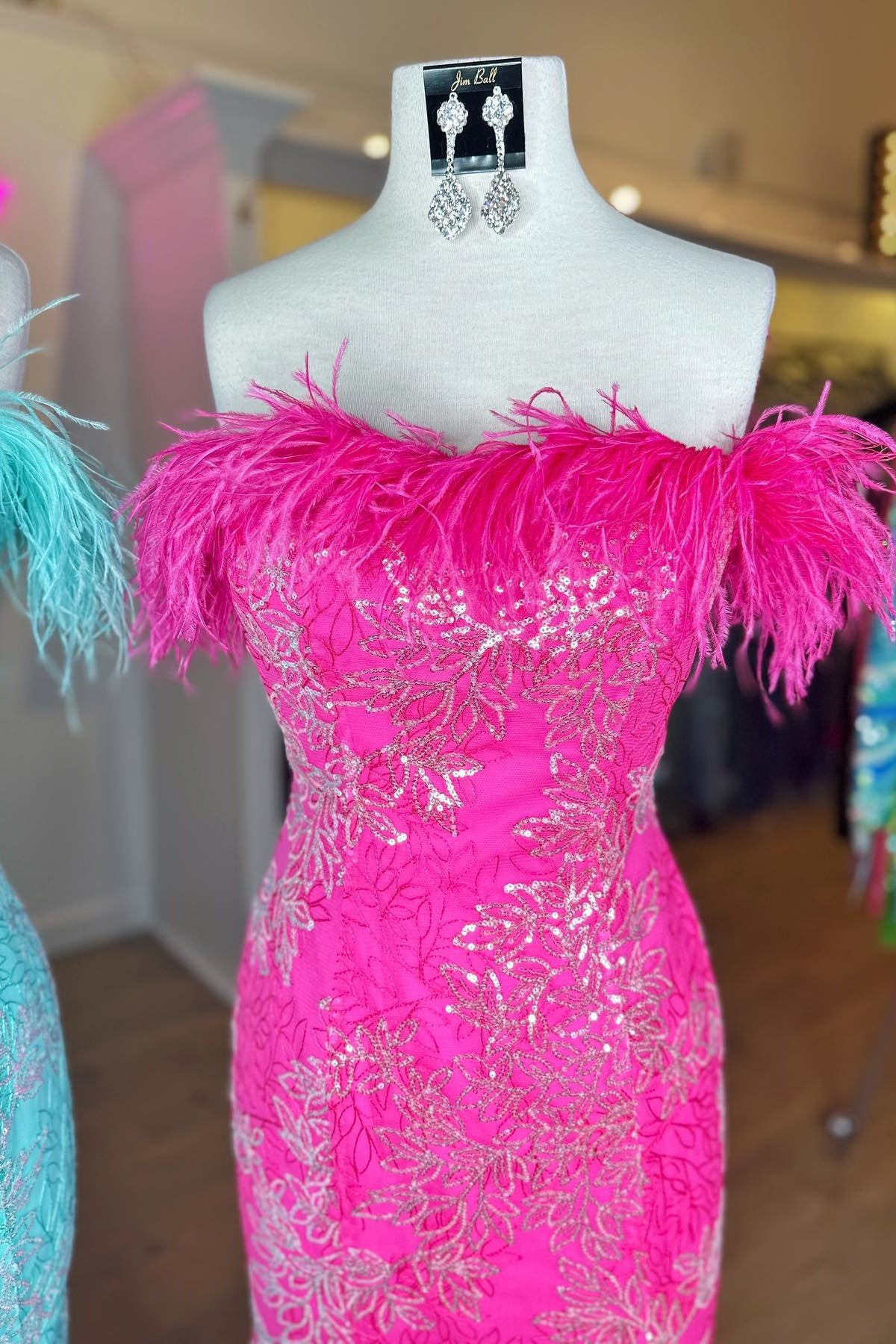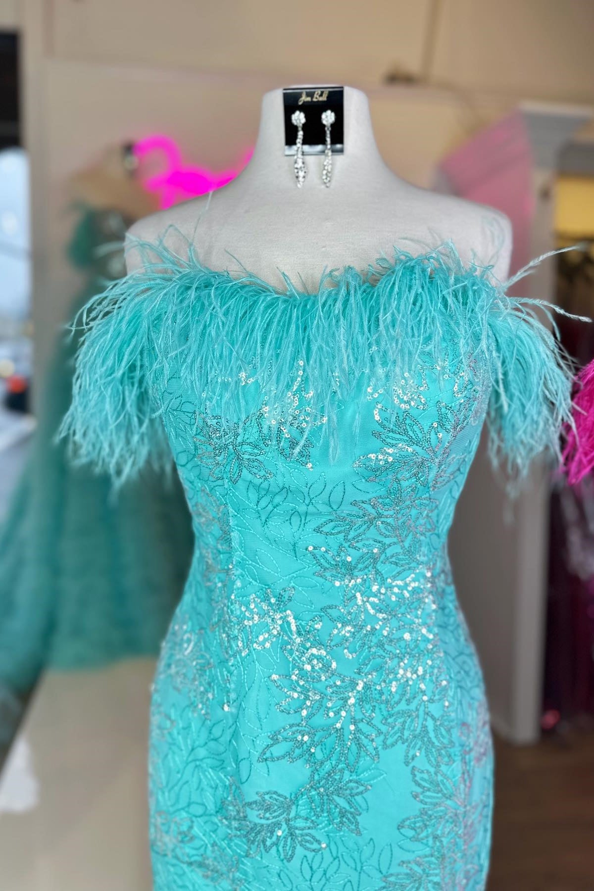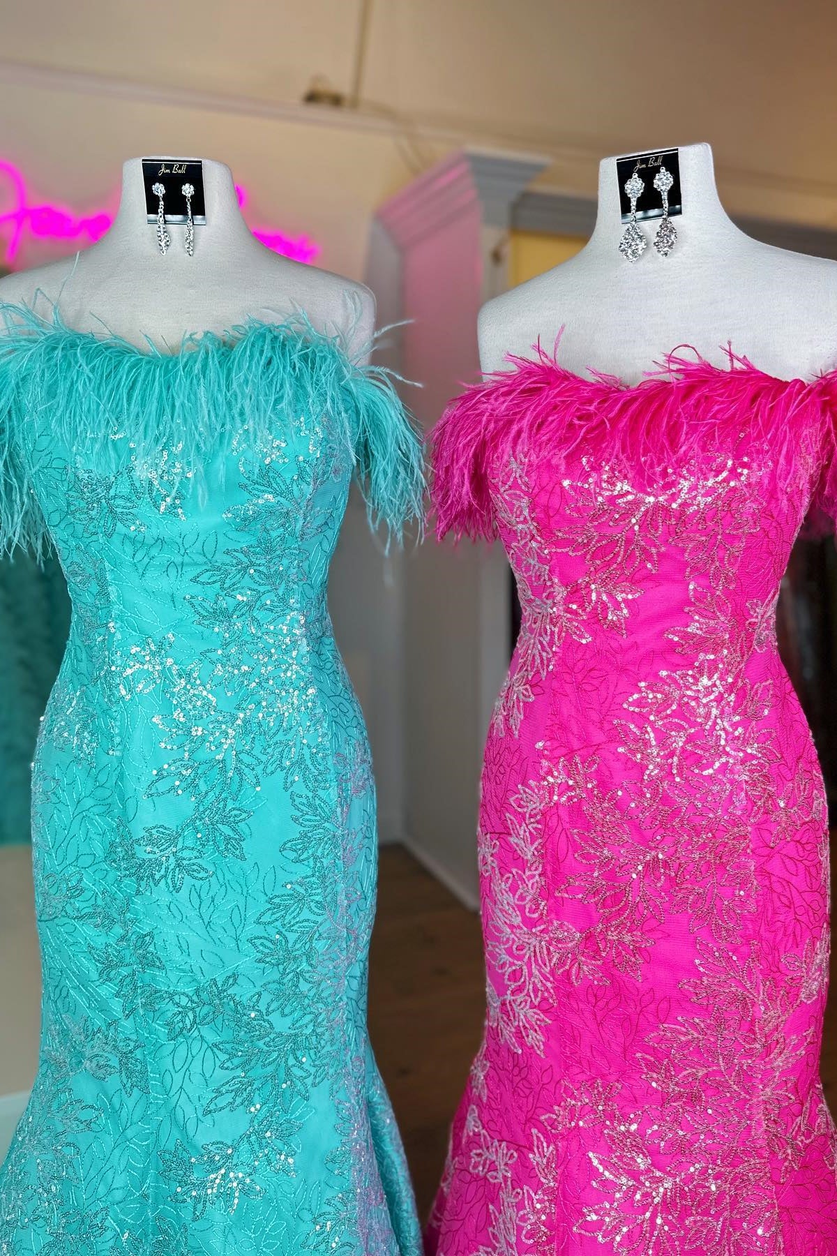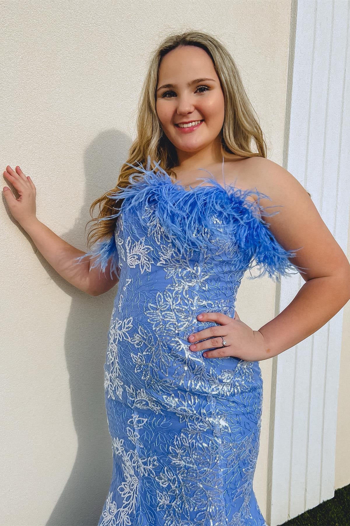 Strapless Sequins-Embroidered Mermaid Prom Dress with Feathers