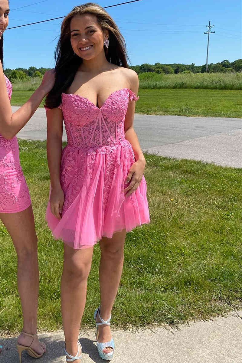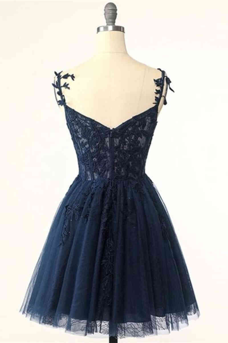 Straps A-Line Navy Lace Appliques Short Party Dress