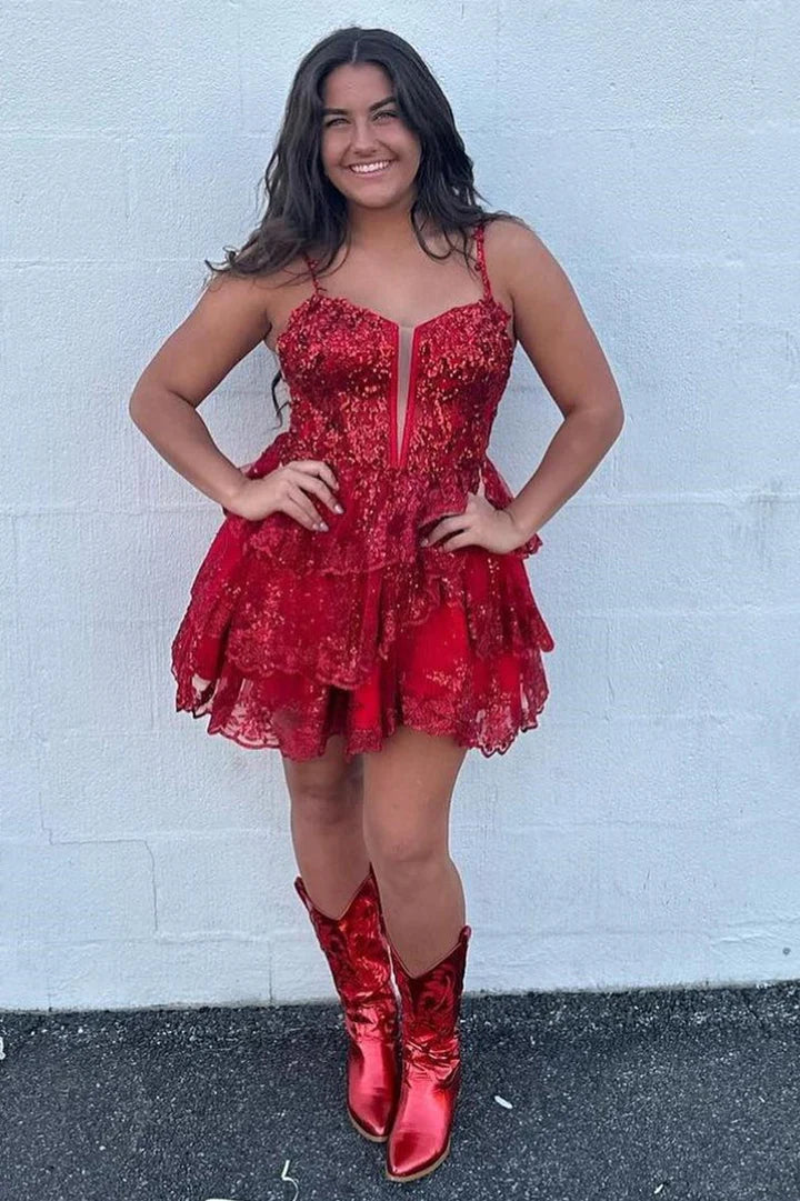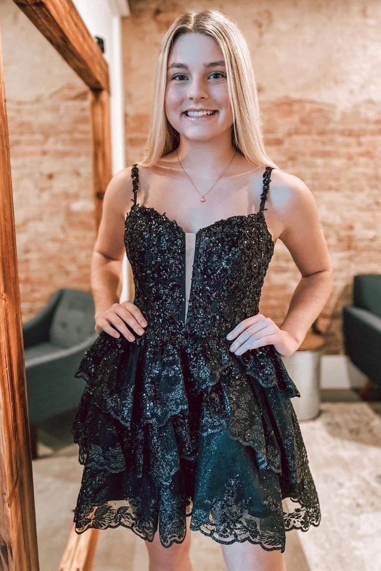 Straps Lavender Sequin Ruffle A-Line Homecoming Dress