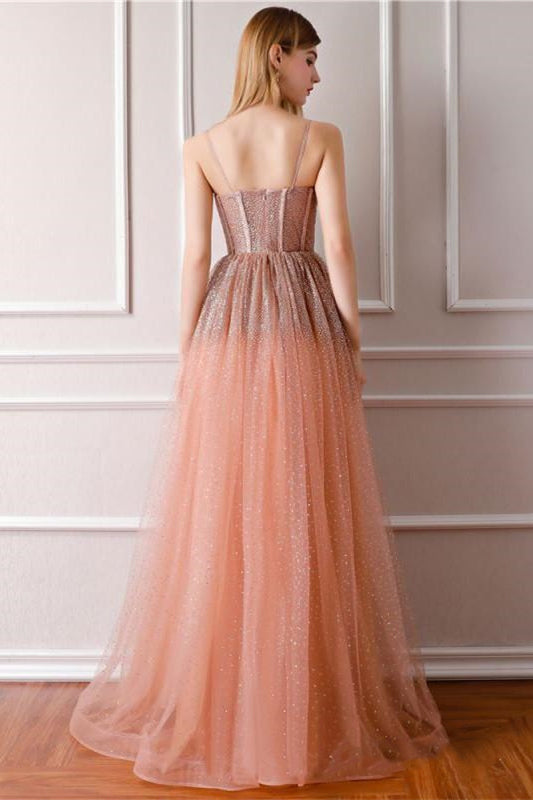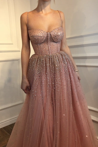 Stunning Spaghetti Straps Blush Pink Long Prom Dress