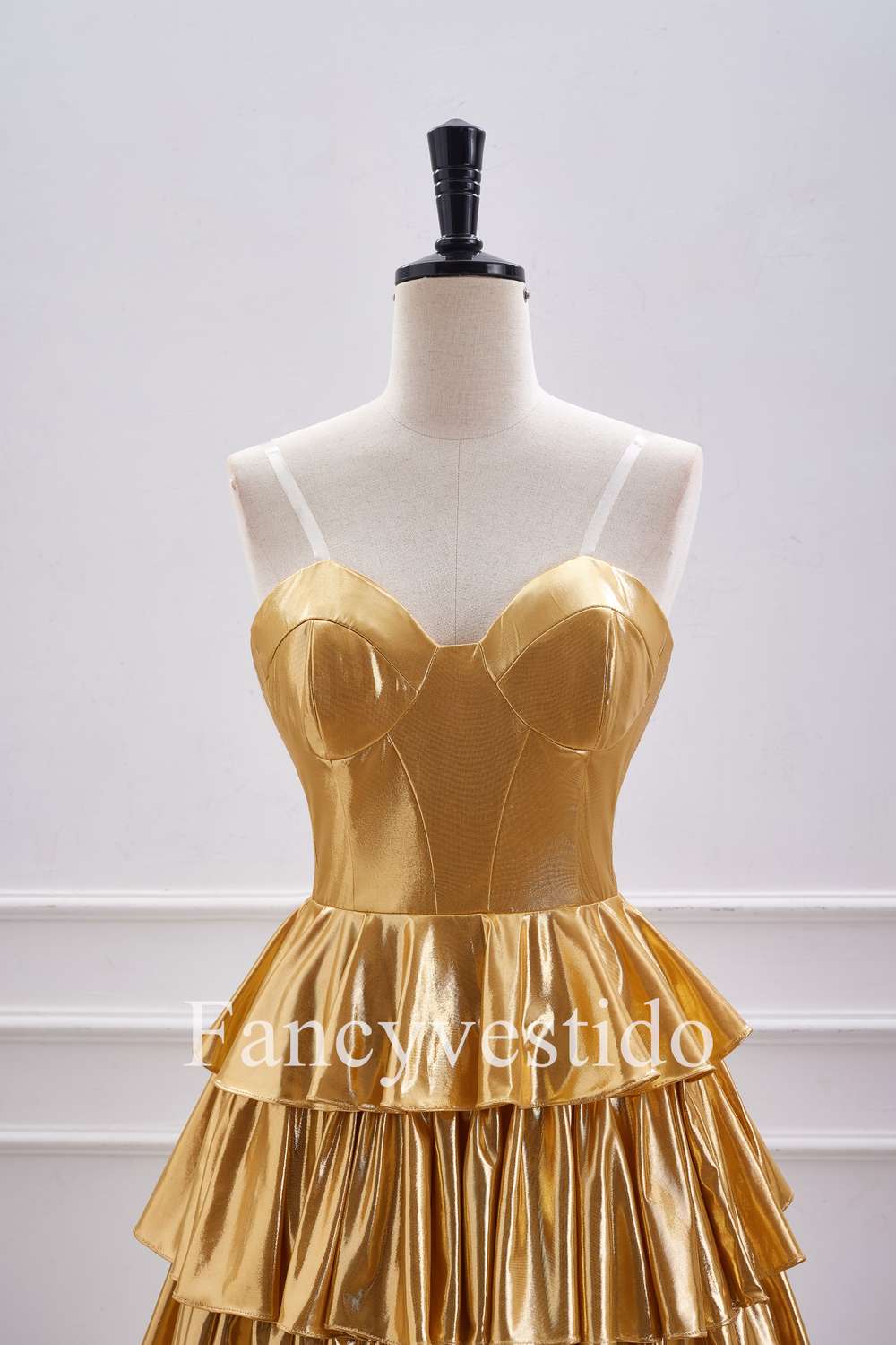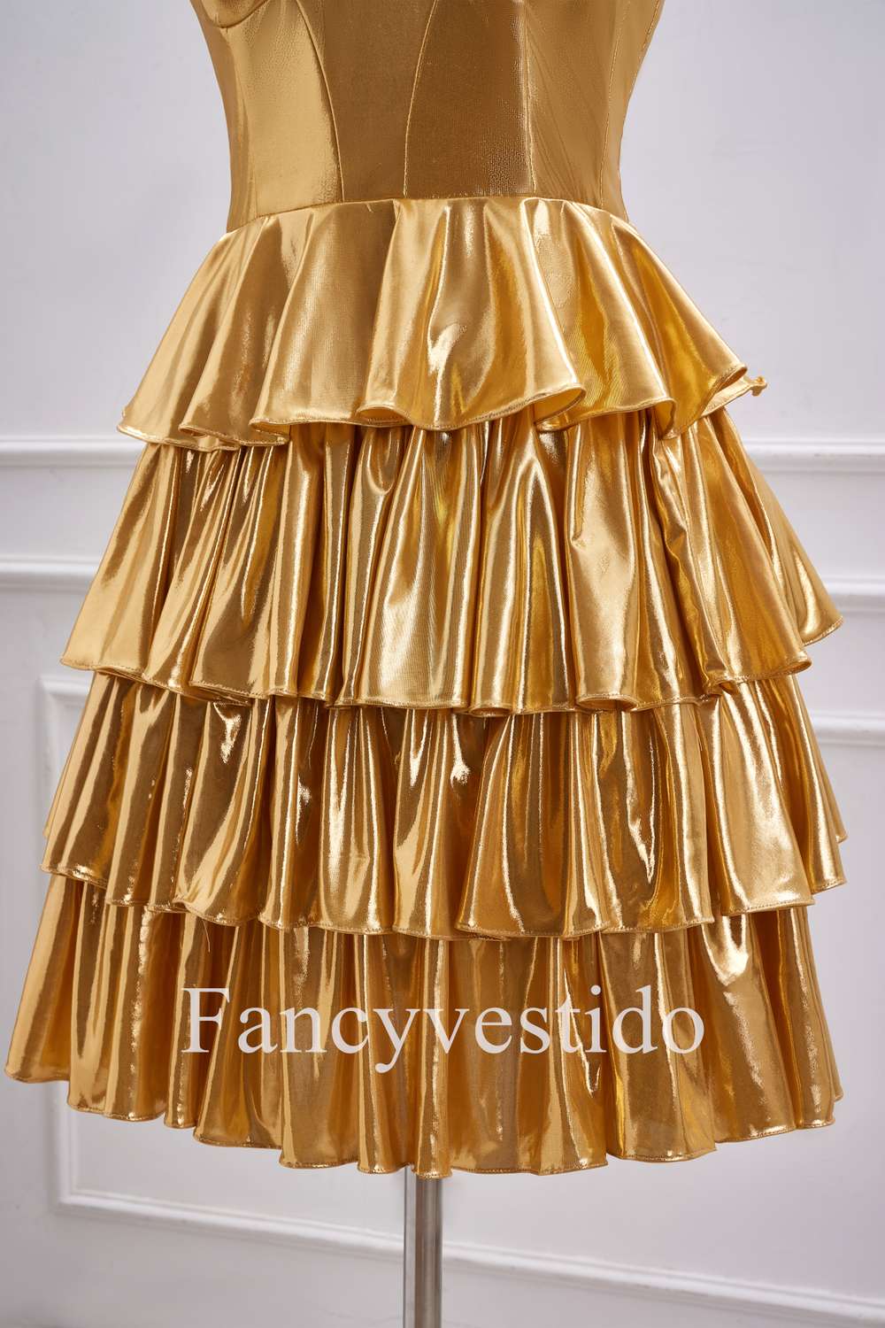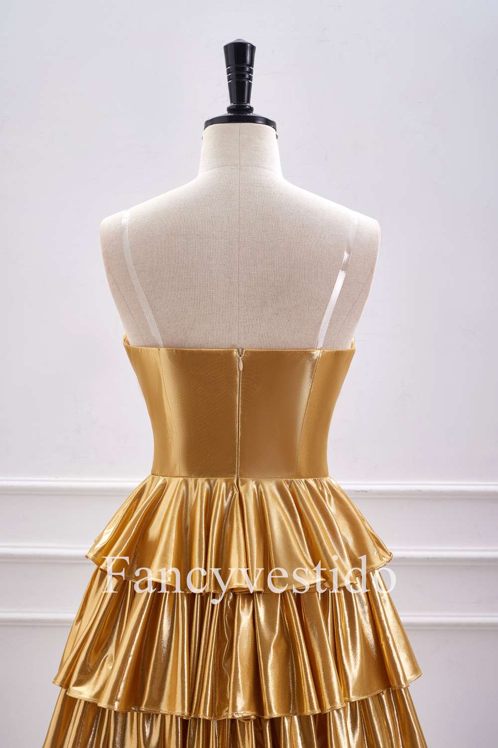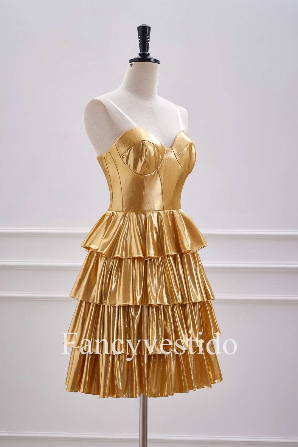 Sweetheart Gold Metallic Tiered A-Line Short Homecoming Dress