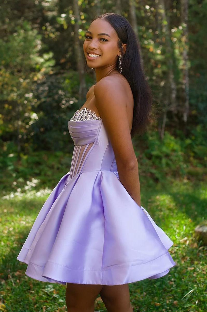 Expertly designed for a stunning look, this Sweetheart Hot Pink Pleated Short Party Dress features a beautiful sweetheart neckline adorned with glistening rhinestones. The elegant a-line skirt and convenient zipper back ensure a comfortable and effortless fit. Perfect for any special occasion.