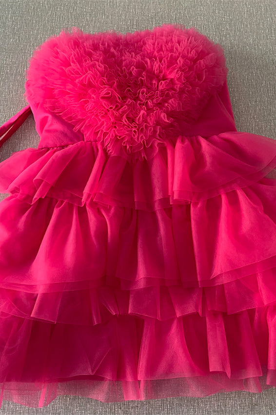 Sweetheart Hot Pink Ruffle Layered Short Homecoming Dress