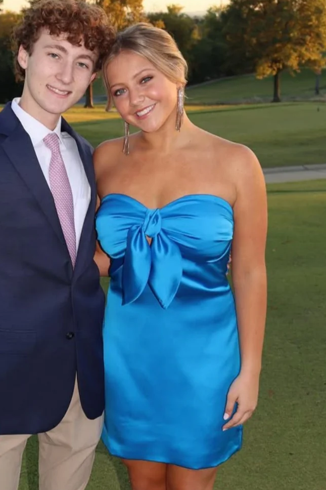 This short homecoming dress features a form-fitting silhouette with a sweetheart neckline and a subtle keyhole detail, combining classic charm with a modern edge for a refined and captivating look.