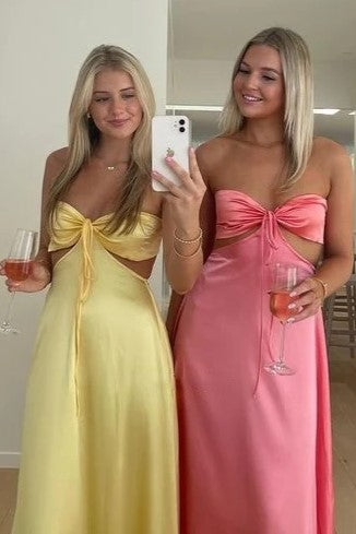 Sweetheart Pink Cutout Party Dress with Bow Back