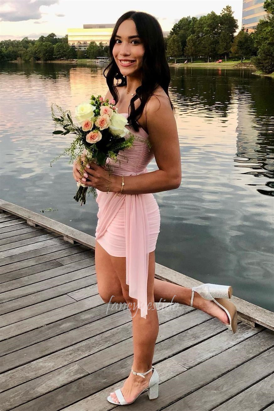 Sweetheart Pink Ruched Party Homecoming Dress