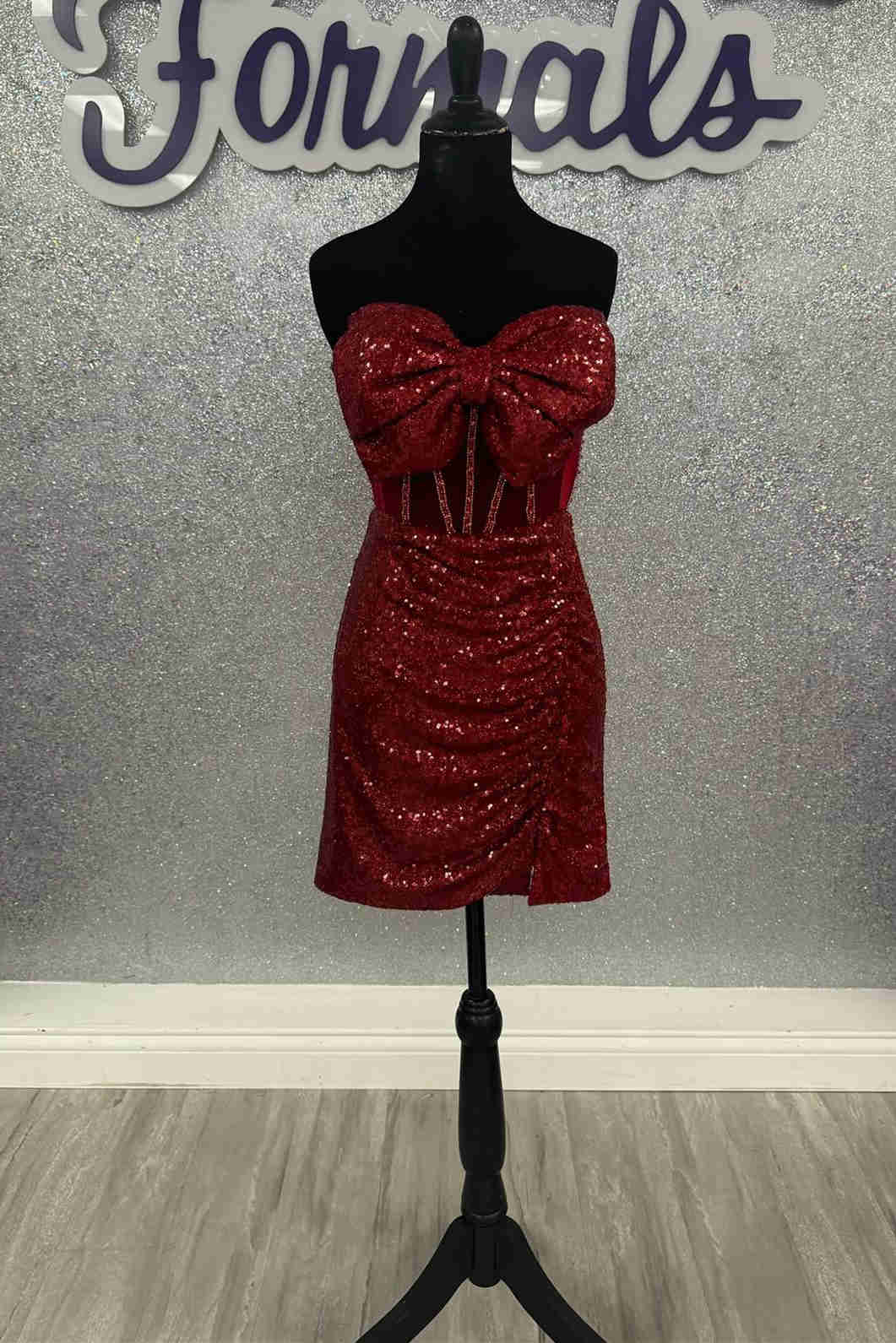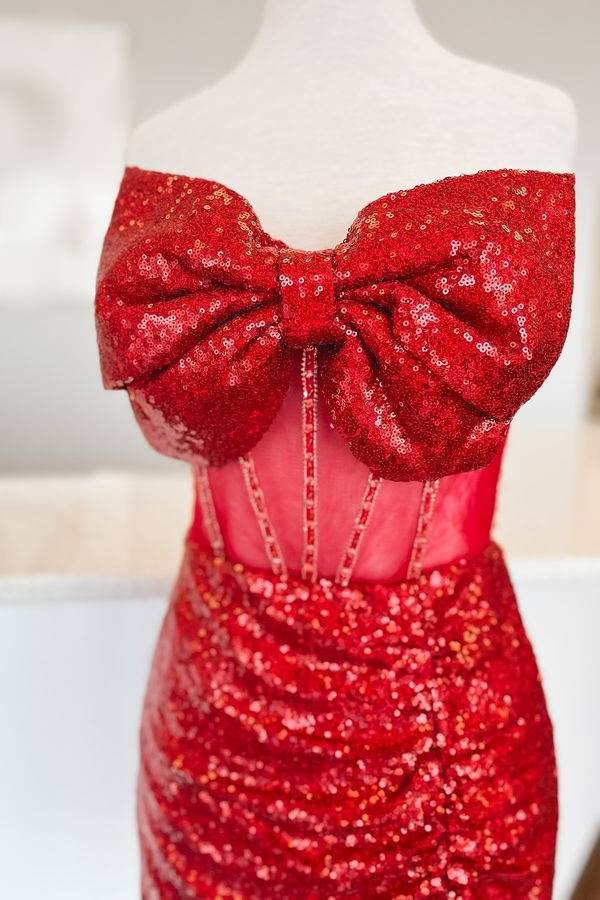 Sweetheart Red Sequin Ruched Short Homecoming Dress with Bow