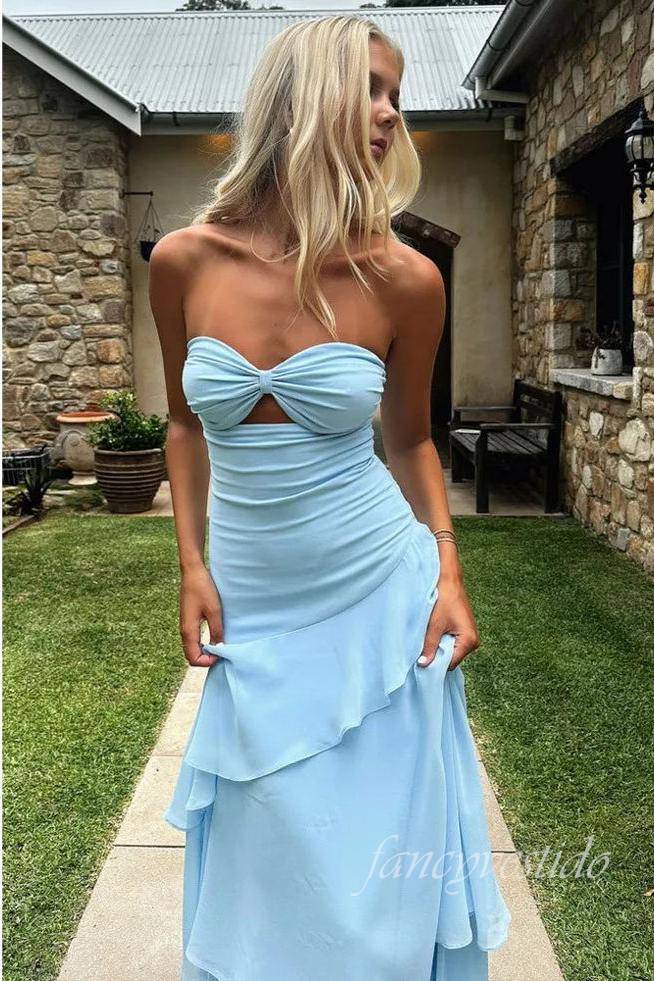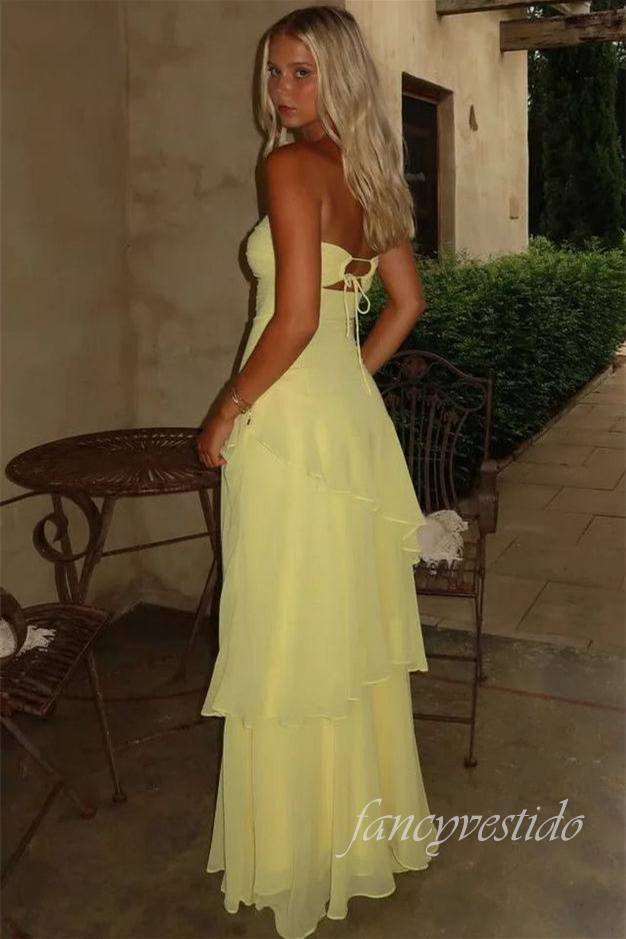 Sweetheart Yellow Keyhole Ruffle Mermaid Prom Dress