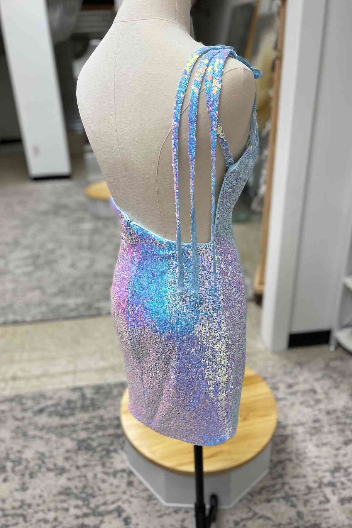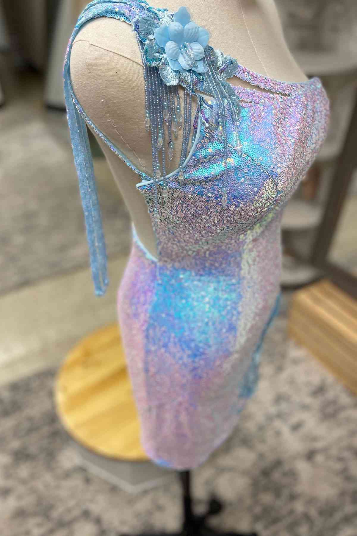 Tassel One Shoulder Sequined Homecoming Dress with Flowers
