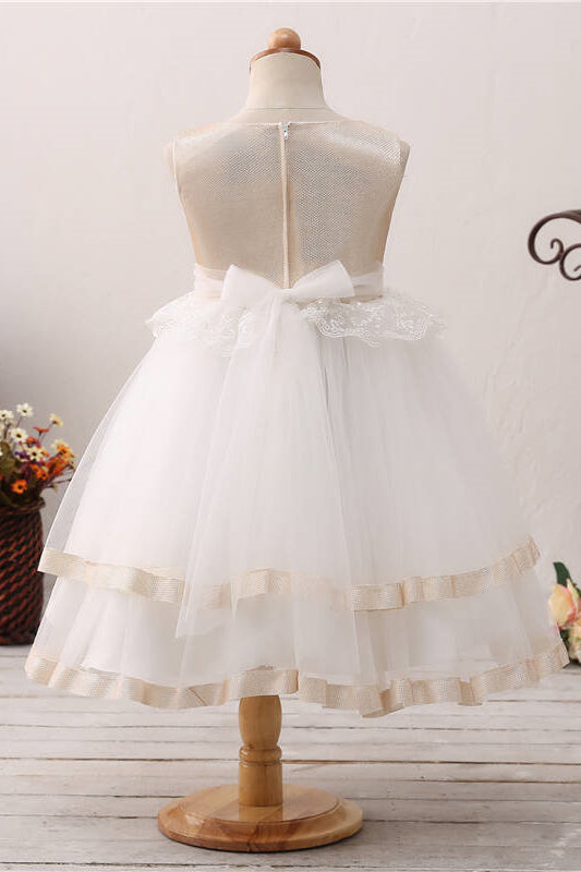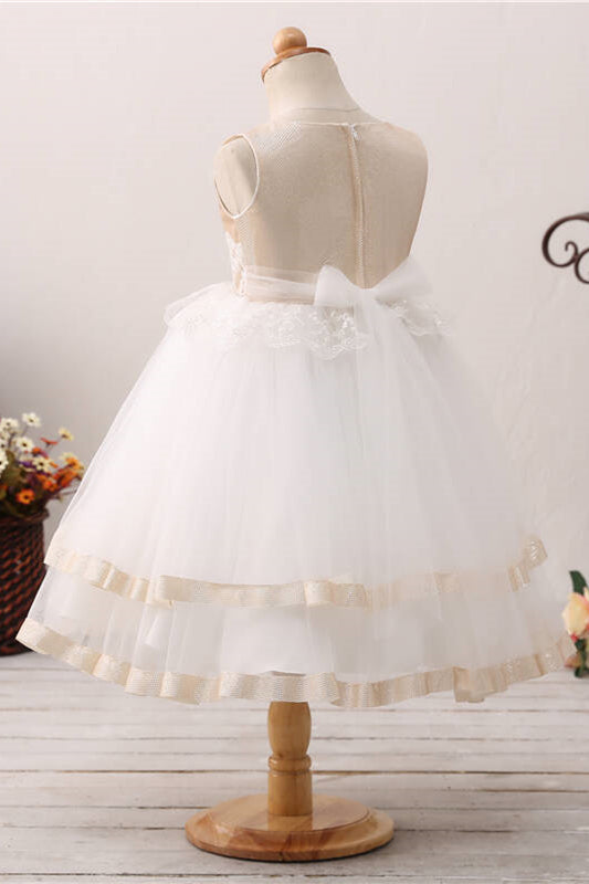 Toddler Lace Applique Champagne and White Flower Girl Dress