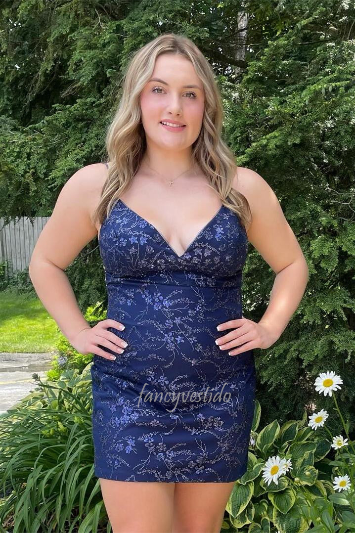 Get ready to turn heads in this stunning V-neck applique tight homecoming dress! Featuring intricate lace-up details and a flattering v-neckline, this dress is perfect for any special occasion. Its form-fitting silhouette and delicate applique add an elegant touch, making you look and feel like a true fashion expert. Available now for a limited time.