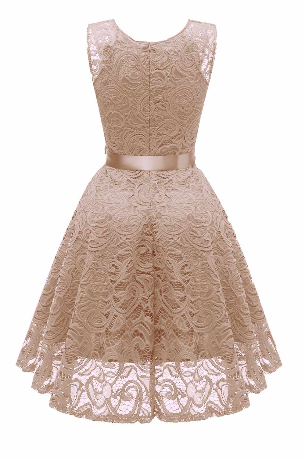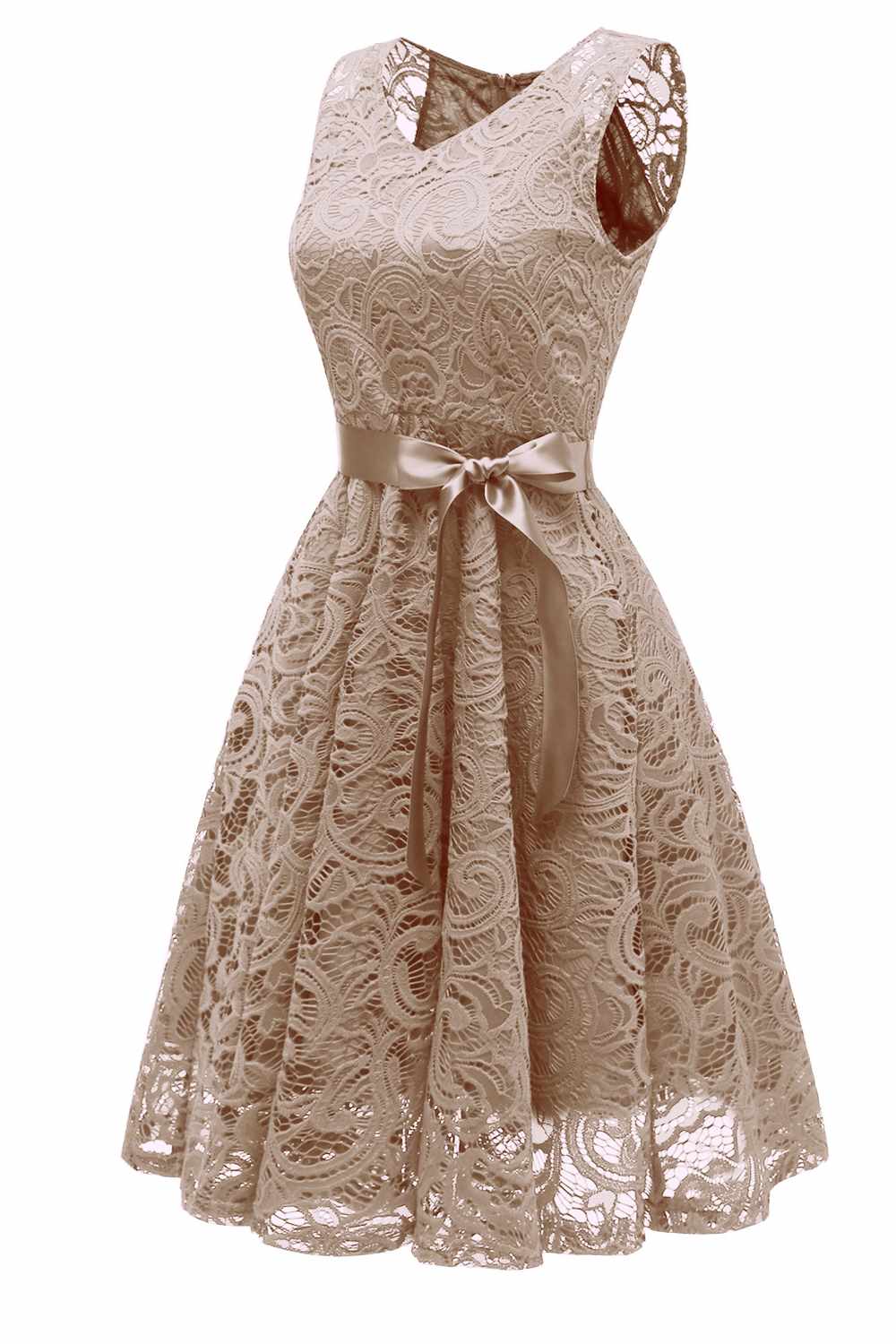 Spaghetti Straps Cowl Neck Tea-Length Champagne Bridesmaid Dress