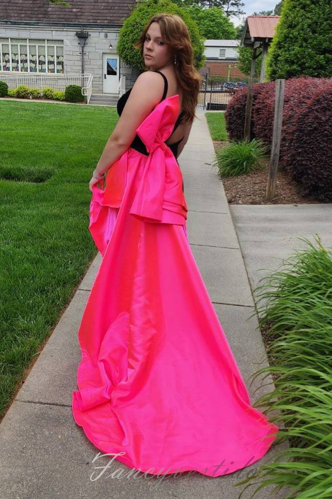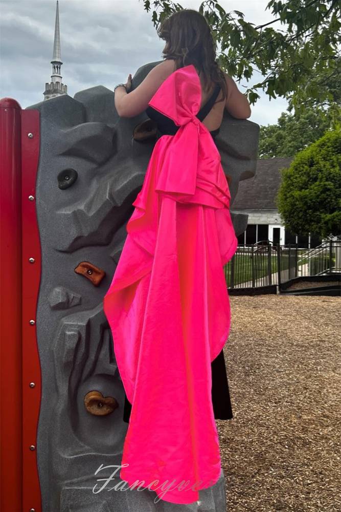 V-Neck Velvet Mermaid Slit Prom Dress with Bow Train