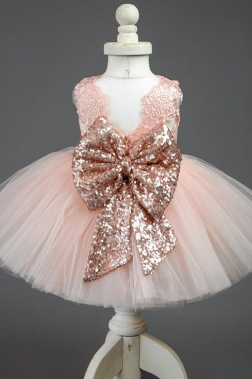 Cute Appliqued Rose Gold Flower Girl Dress with Bow Knot