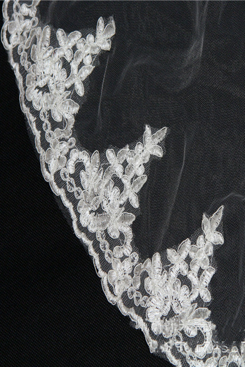 1.5 Meters Lace Appliqued White Bridal Veil