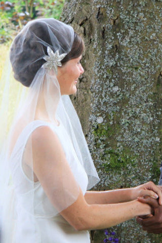 Crimping Lucky Knot White Bridal Veil