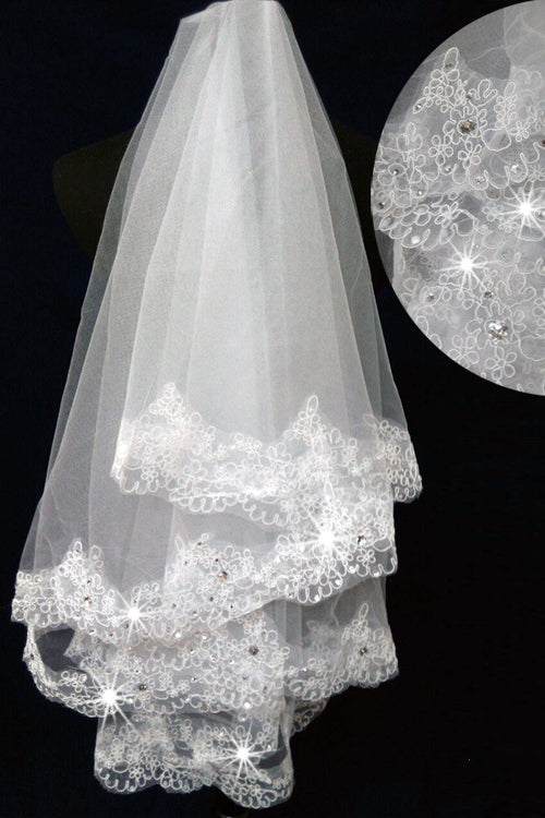 Short White Double Layered Lace Edged Veil
