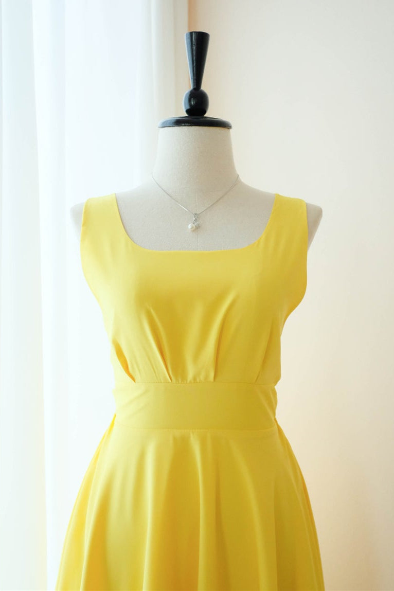 Short V-Back A-line Square Yellow Homecoming Dress with Bowknot