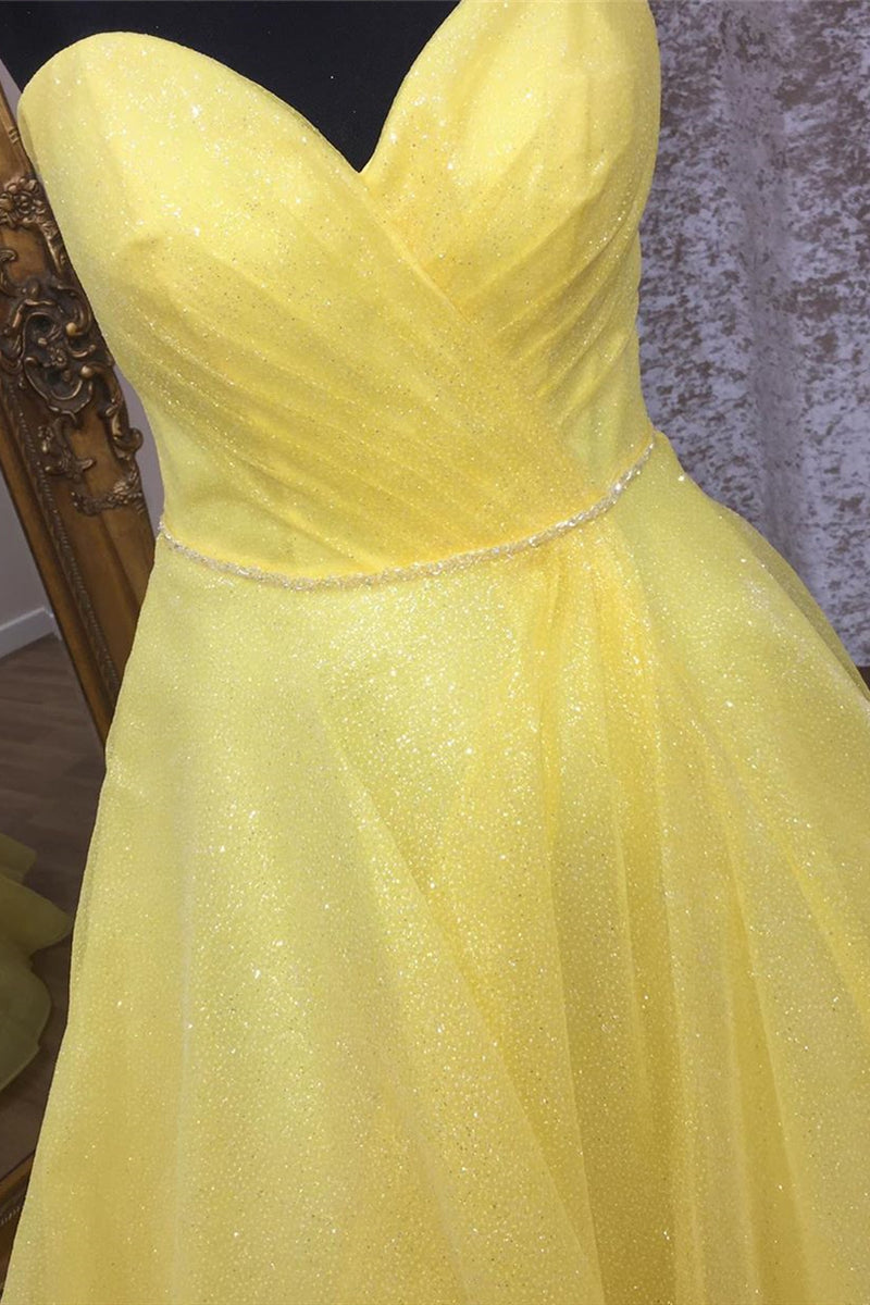 Sweetheart Pleated Yellow Prom Ball Gown