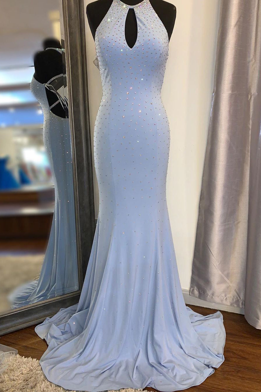Elegant Halter Mermaid Beaded Long Prom Dress