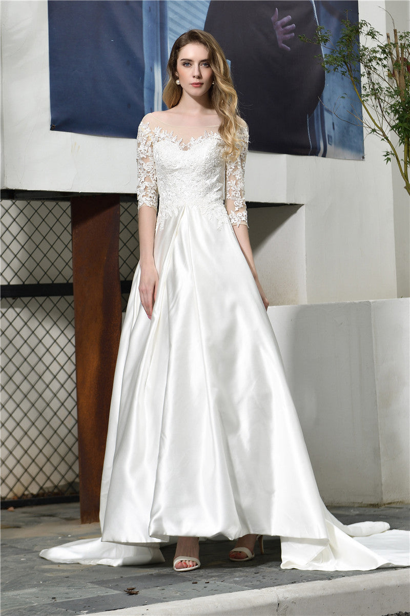 Princess A-Line Long Sleeves Ivory Wedding Dress with Slit-Front