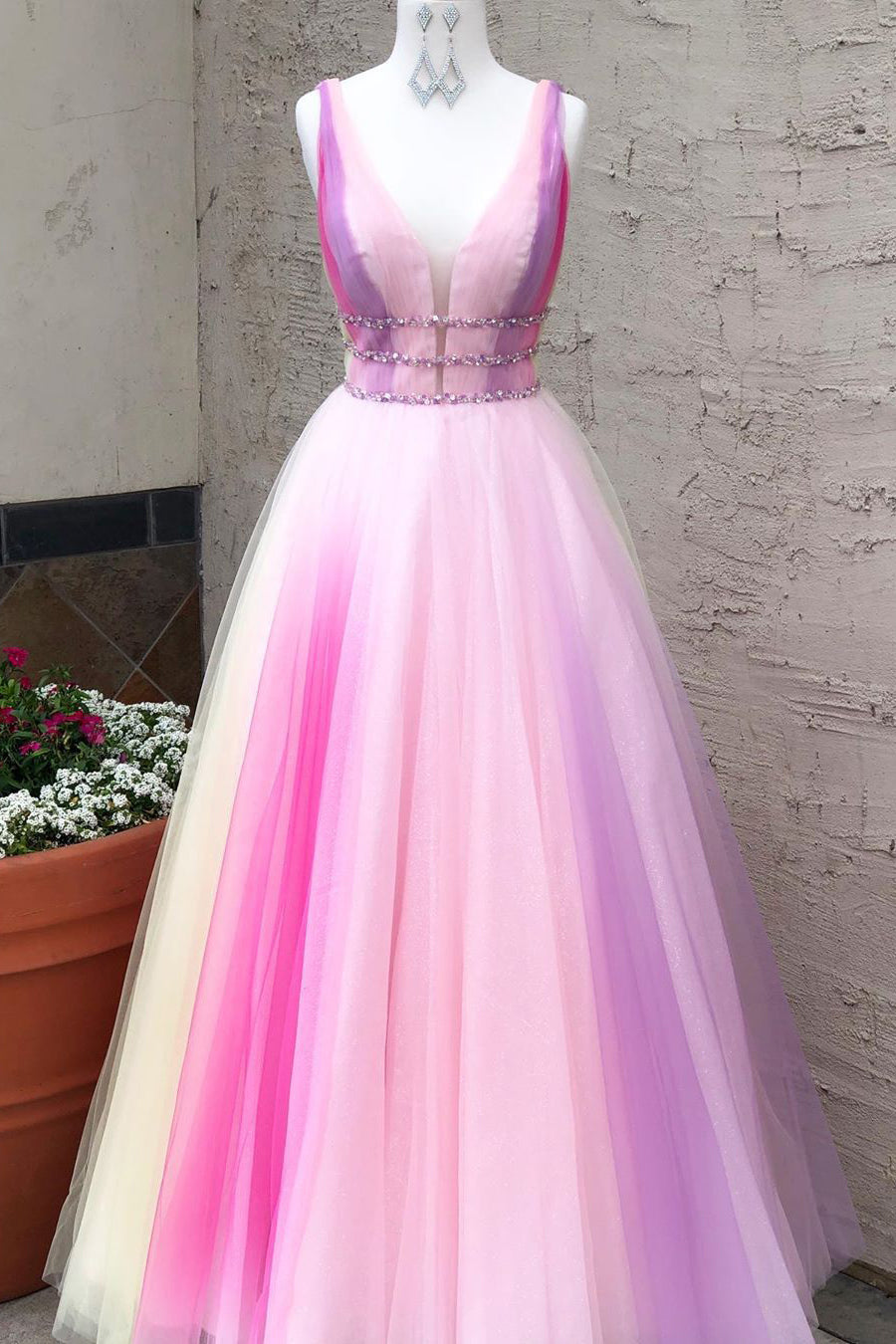 Princess V Neck A-Line Ombre Purple Long Prom Dress