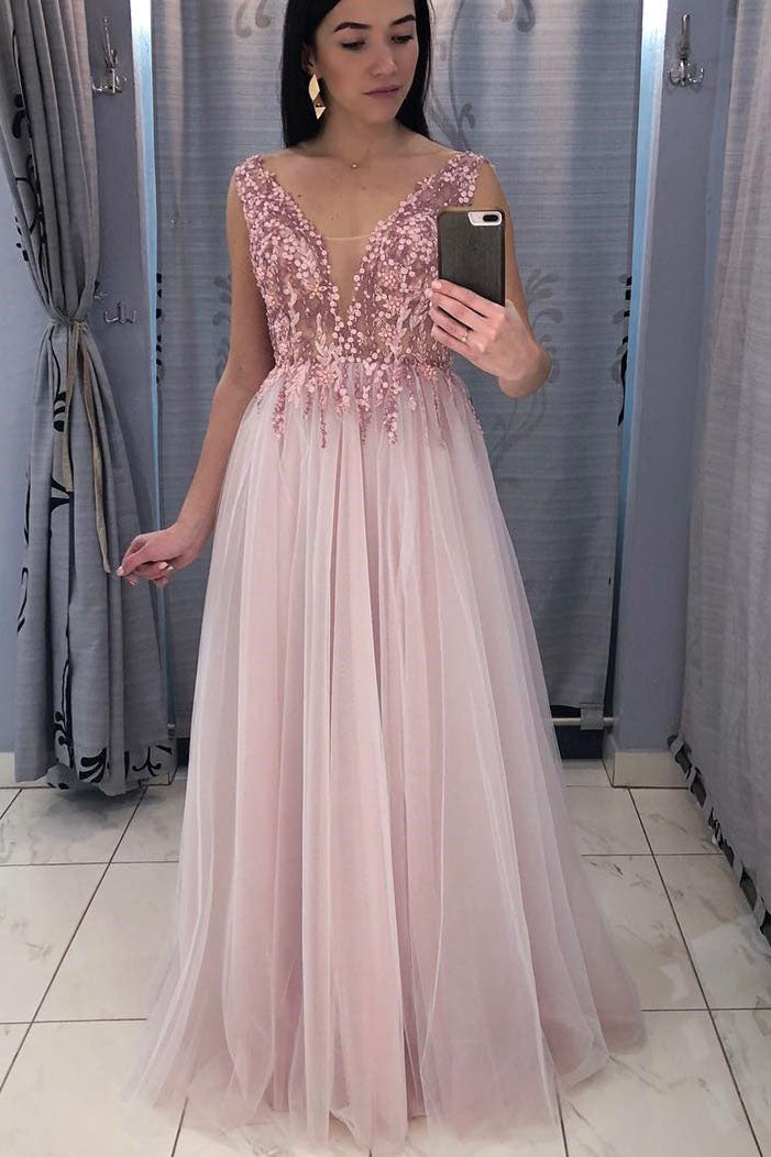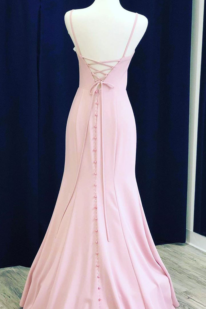 Elegant Lace-up Back V Neck Mermaid Pink Long Prom Dress