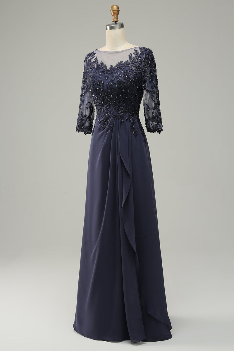 Stormy 3/4 Sleeves Appliques Ruffle Long Mother of the Bride/Groom Dress