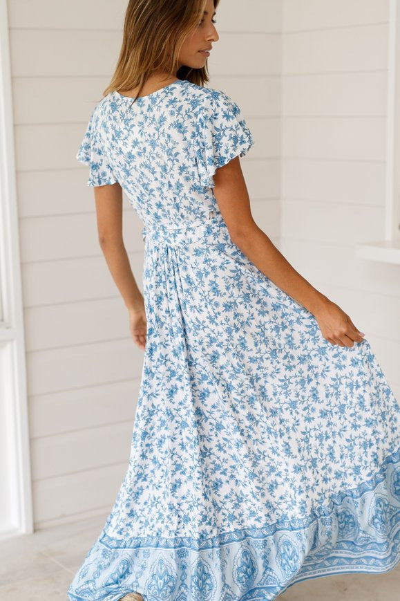 Sexy V-Neck Asymmetrical Long Floral Summer Dress