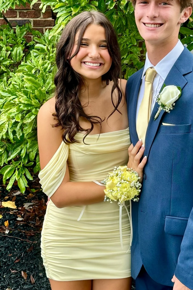 Sweetheart Twists Yellow A-Line Short Homecoming Dress