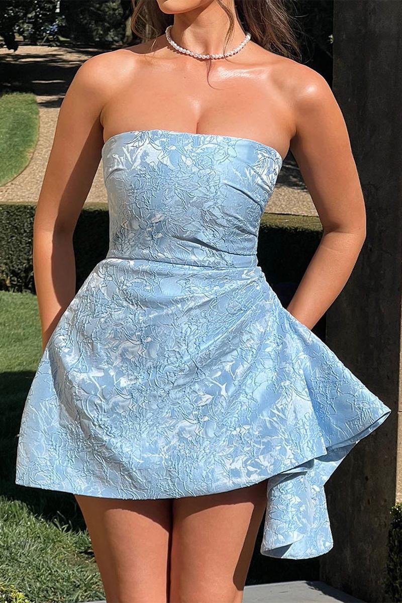 Strapless Blue Applique Homecoming Dress Summer Dress
