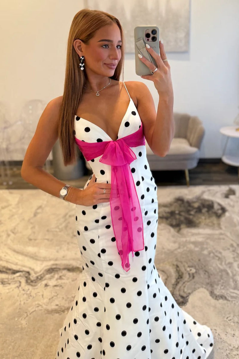 Simple Straps Sweetheart Polka Dots Mermaid Prom Dress