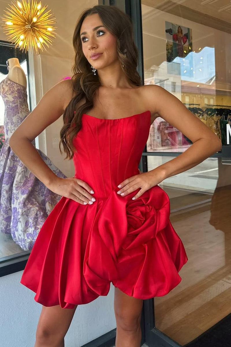 Strapless Pink Sheath Short Homecoming Dress with Backless