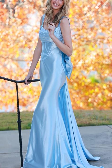 Sage Scoop Neck Satin Mermaid Prom Dress with Slit