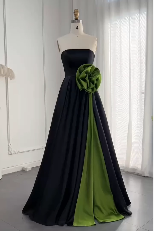 Black One Shoulder Satin Bridesmaid Dresses with Bow