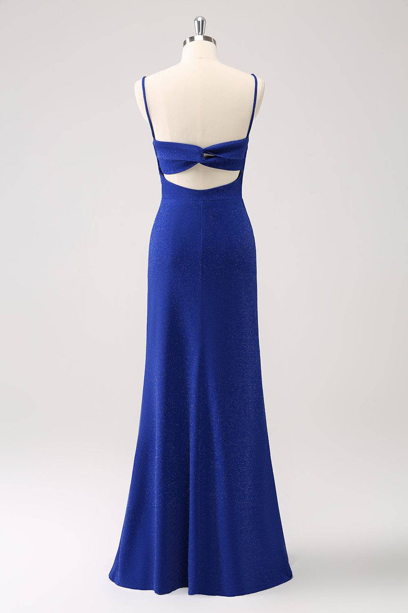 Sparkly Royal Blue Twist Slit Maxi Dress