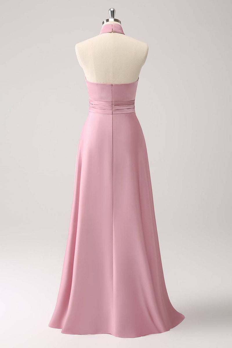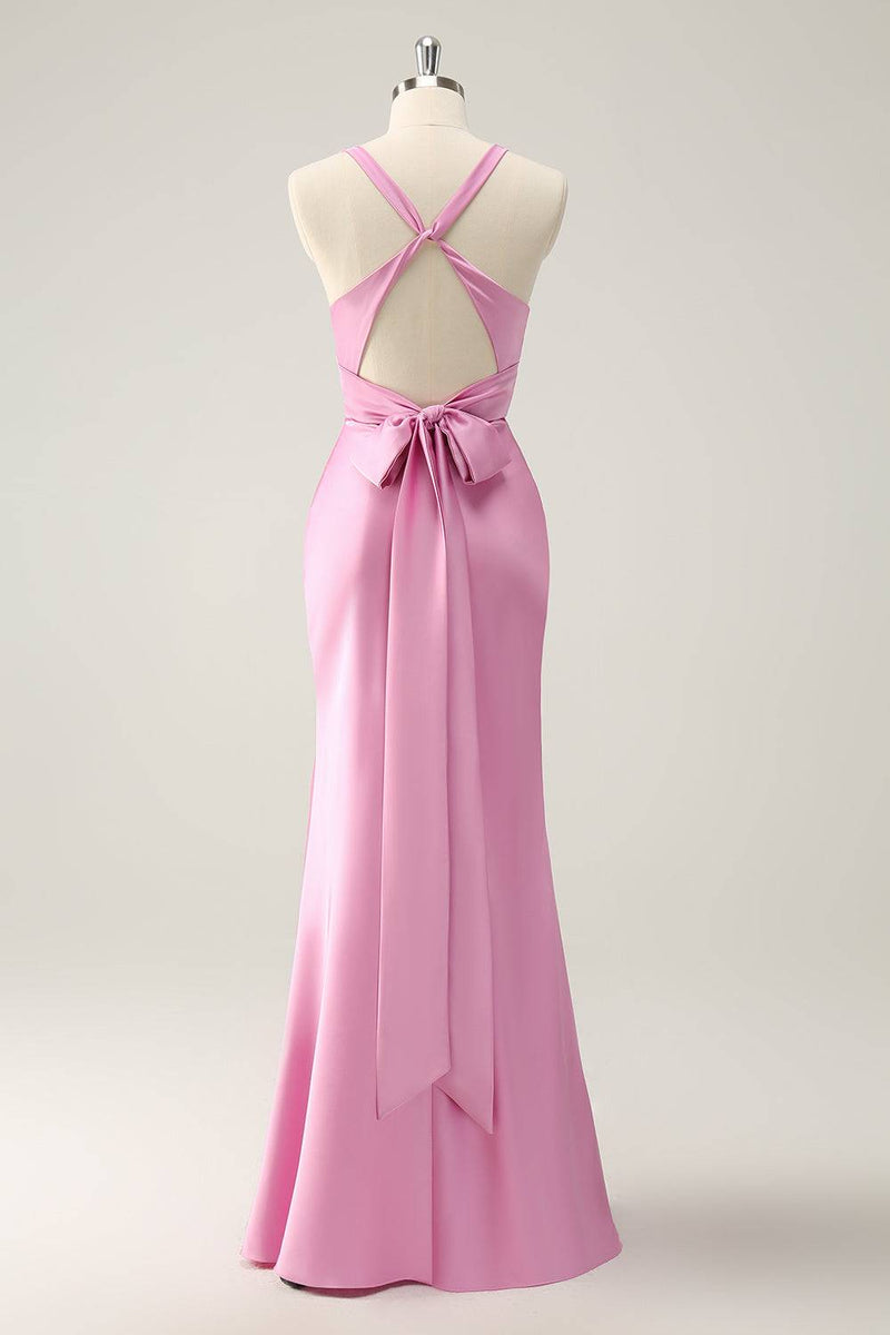 Plunging Neck Pink Twist Mermaid Maxi Dress