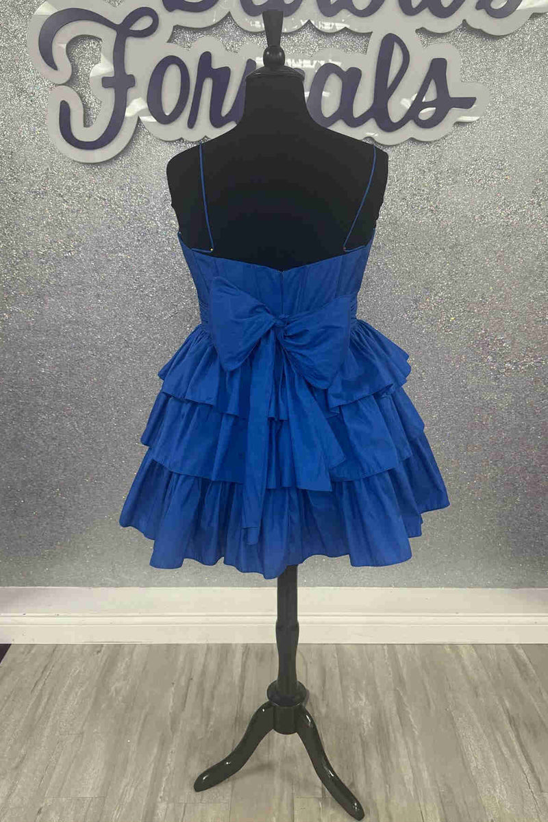 Royal Blue Straps Cut Mirror Sequin Ruffle Short Party Dress