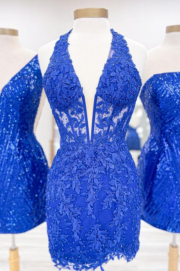 Strapless Metallic Royal Blue Keyhole Ruched Tight Homecoming Dress