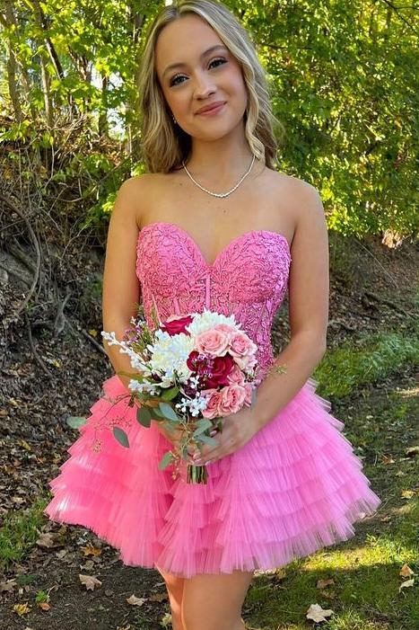Straps Fuchsia Tulle Tiered A-Line Homecoming Dress