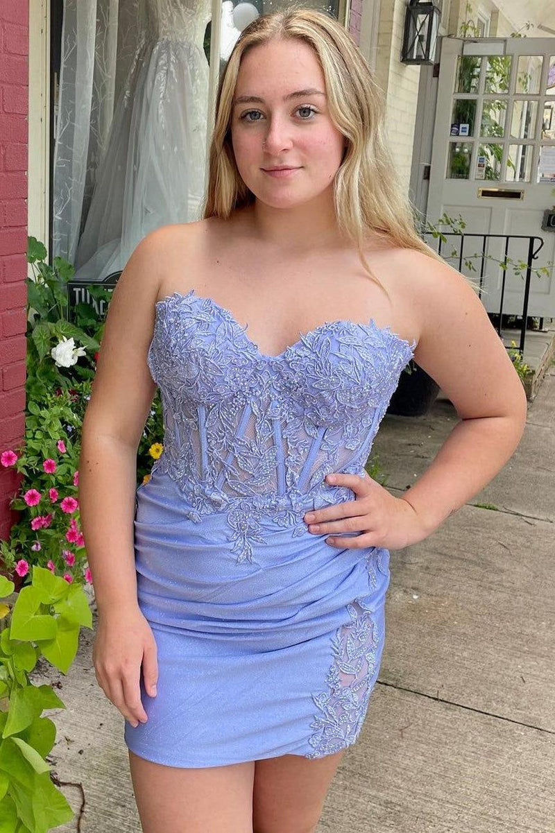 Blue Sweetheart Lace Corset Ruched Short Dress