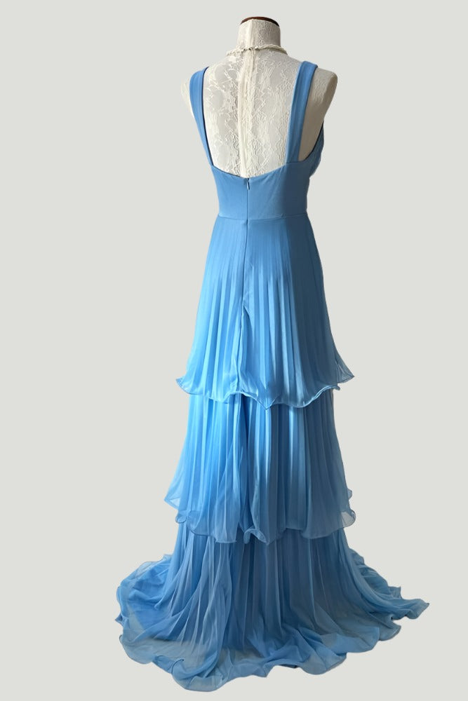 Straps Blue Corset Pleated Tiered Maxi Dress