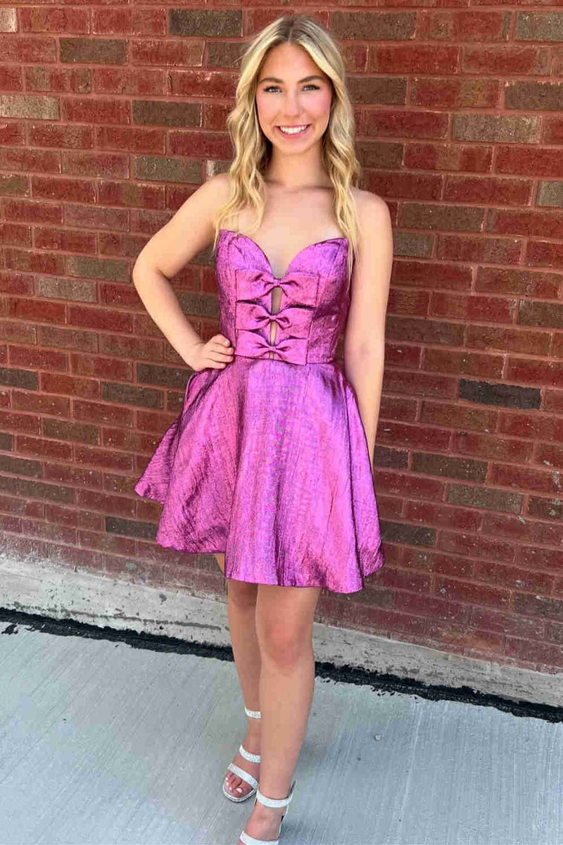 Strapless Pink Taffeta A-line Short Party Dress with Bow