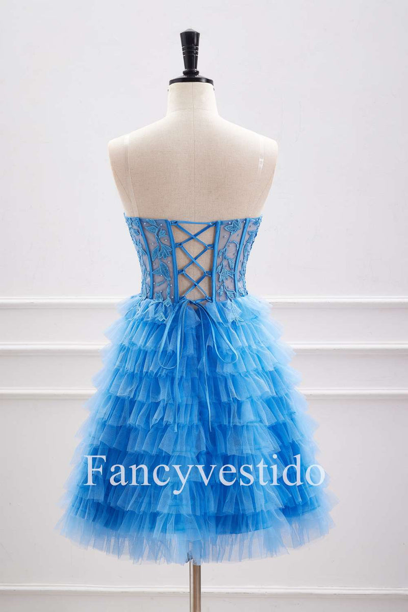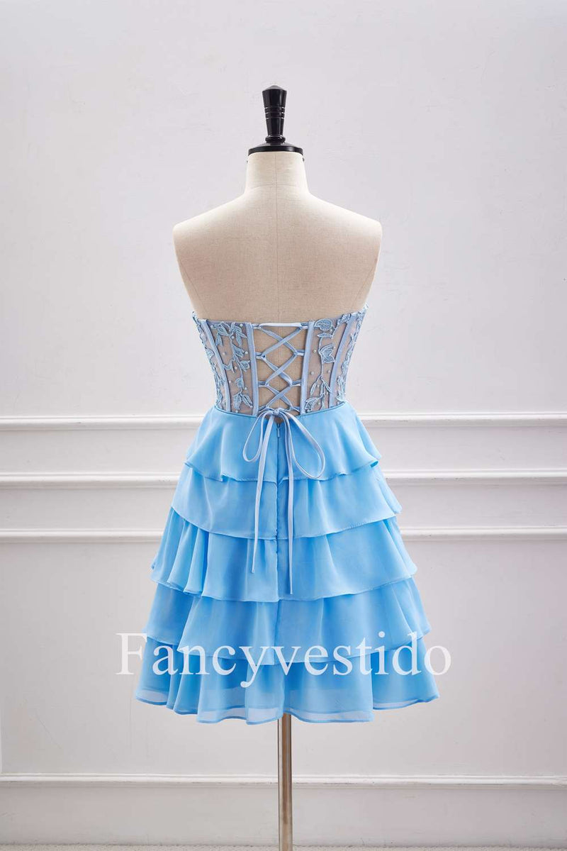 Sweetheart Blue A-Line Tiered Short Homecoming Dress with Appliques