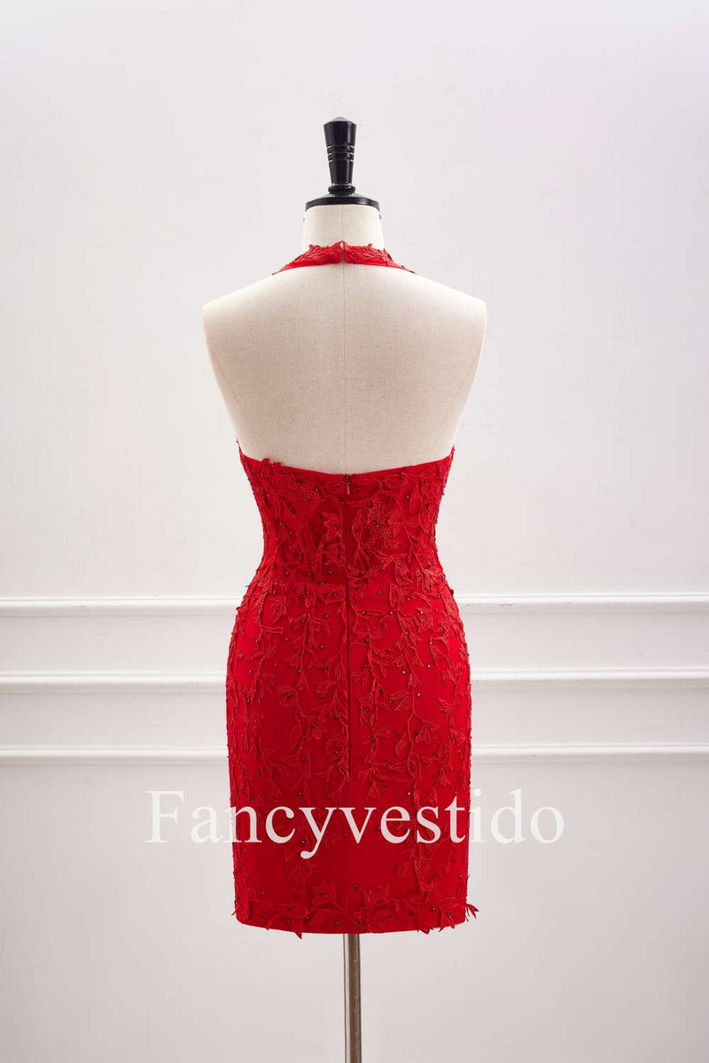 Halter Red Appliques Backless Tight Short Homecoming Dress
