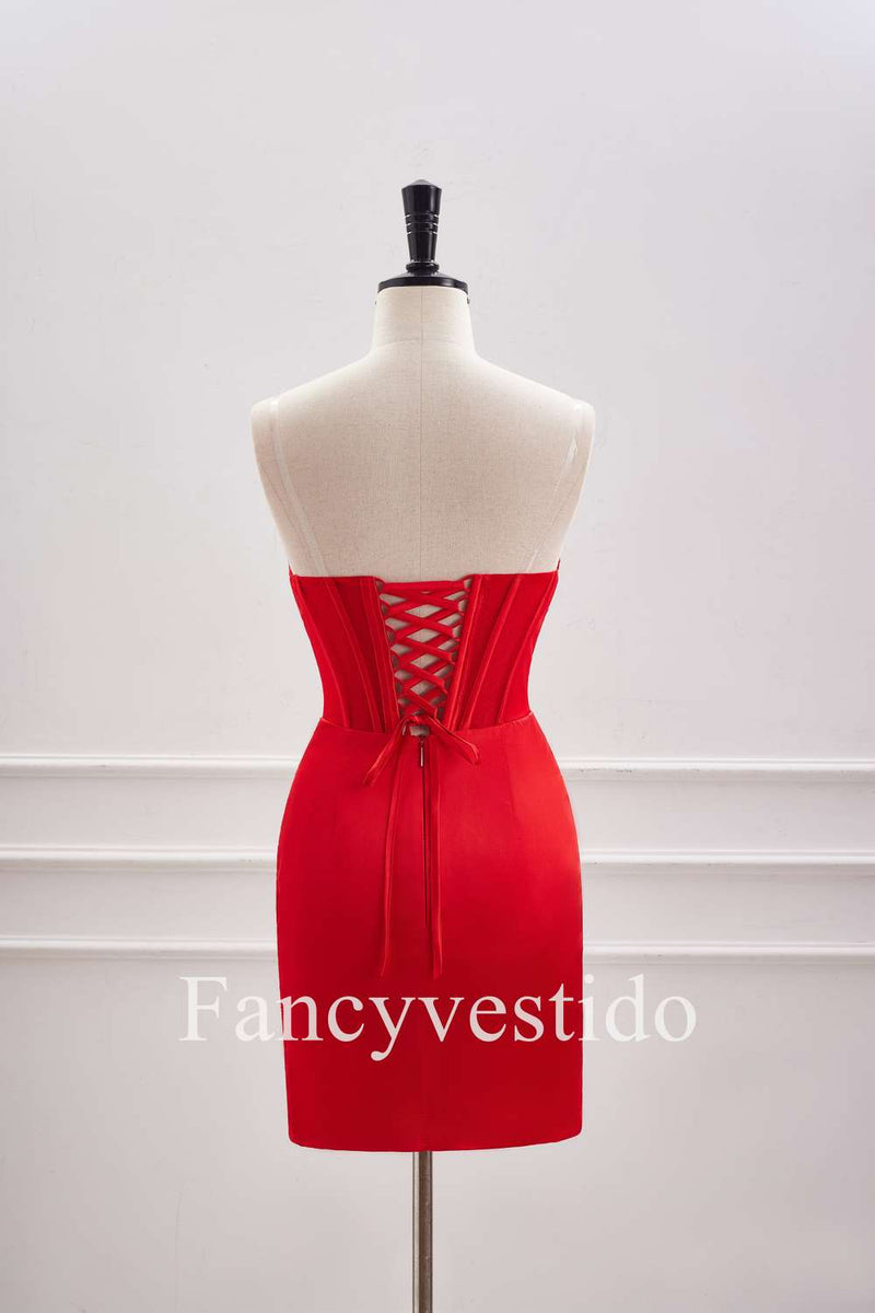 Red Corset Sequin Appliques Short Party Dress with Bow